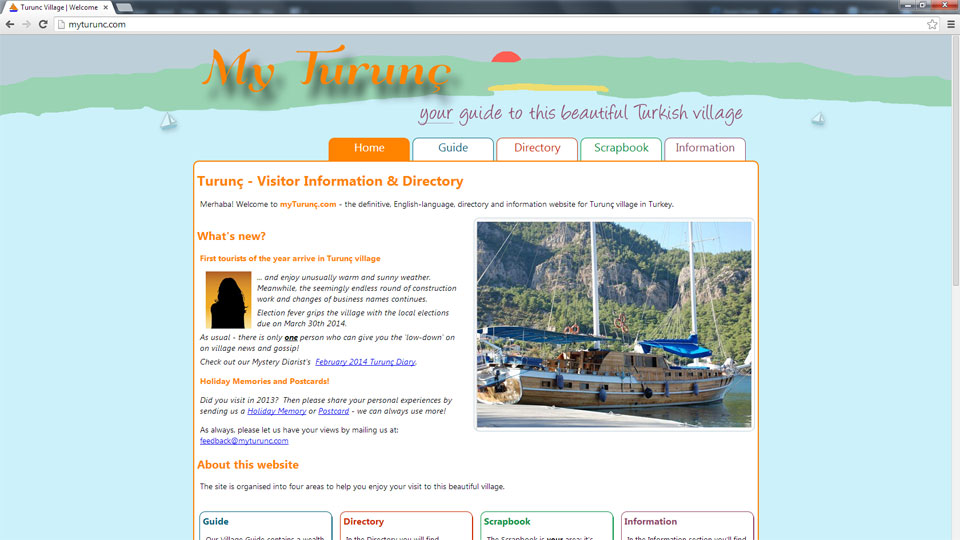 A real challenge of a site. Firstly we are also the clients for this site - so we had to choose the design and style rather than work to someone else's idea. Not only that but we have to source most of the content. It's also a new business model for us where our work is rewarded by selling advertising space to businesses in Turunç.