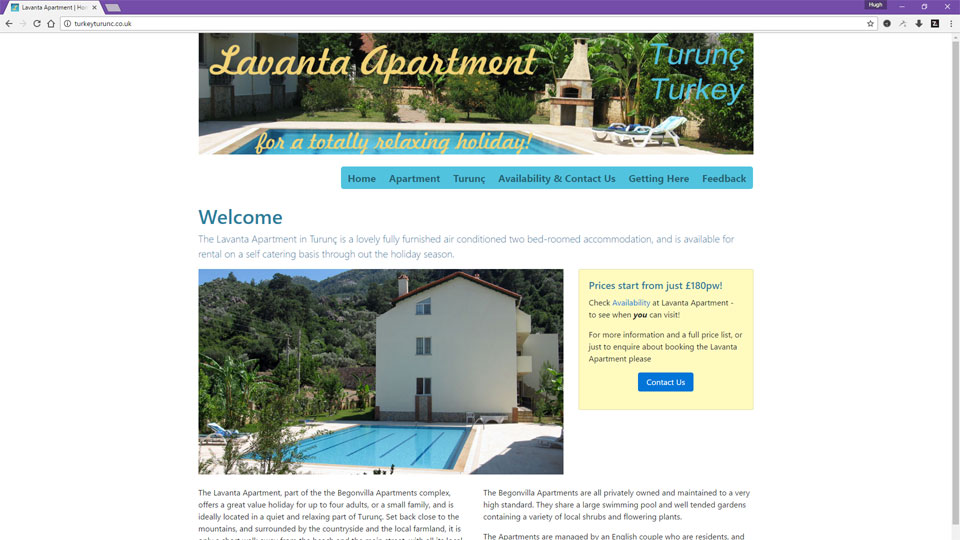 Steve & Sharon Wilson own a lovely apartment in the delightful village of Turunç in Turkey. They already had a website but had seen our other work and asked us to redesign and re-host their existing domain for them.